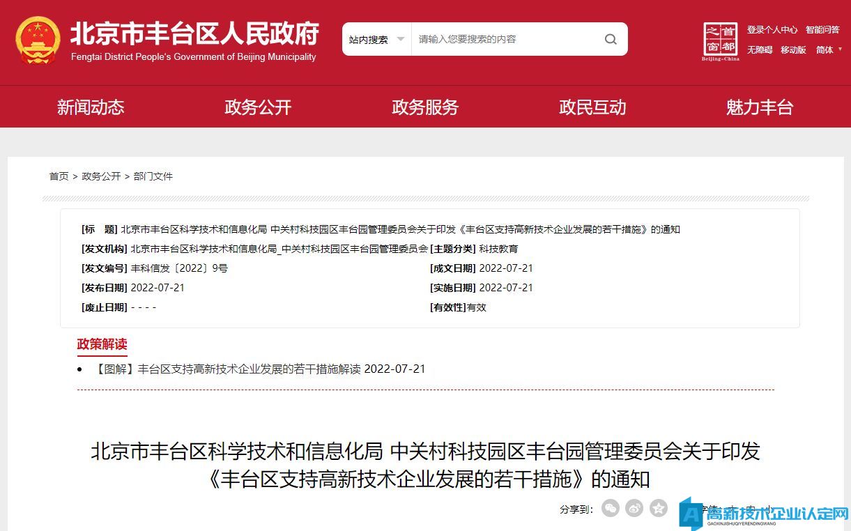 丰台区支持高新技术企业发展的若干措施