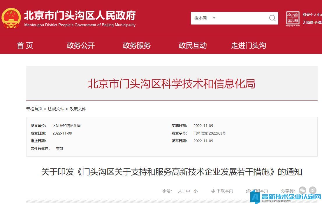本文标题:北京市门头沟区高新技术企业奖励政策:门头沟区关于支持和服务高新技术企业发展若干措施