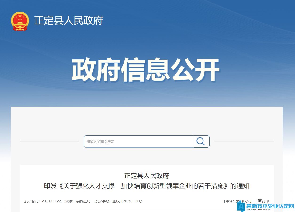 石家庄市正定县高新技术企业奖励政策:关于强化人才支撑 加快培育创新型领军企业的若干措施