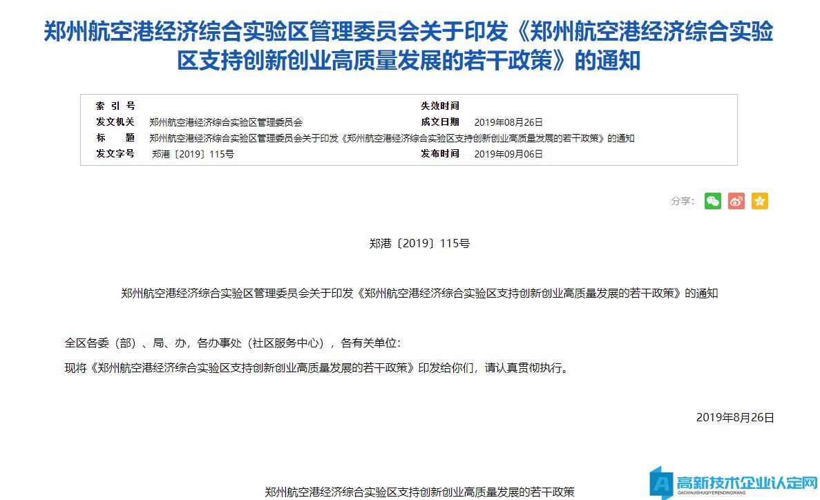 本文标题:[废止]郑州市航空港区高新技术企业奖励政策:郑州航空港经济综合实验区支持创新创业高质量发展的若干政策