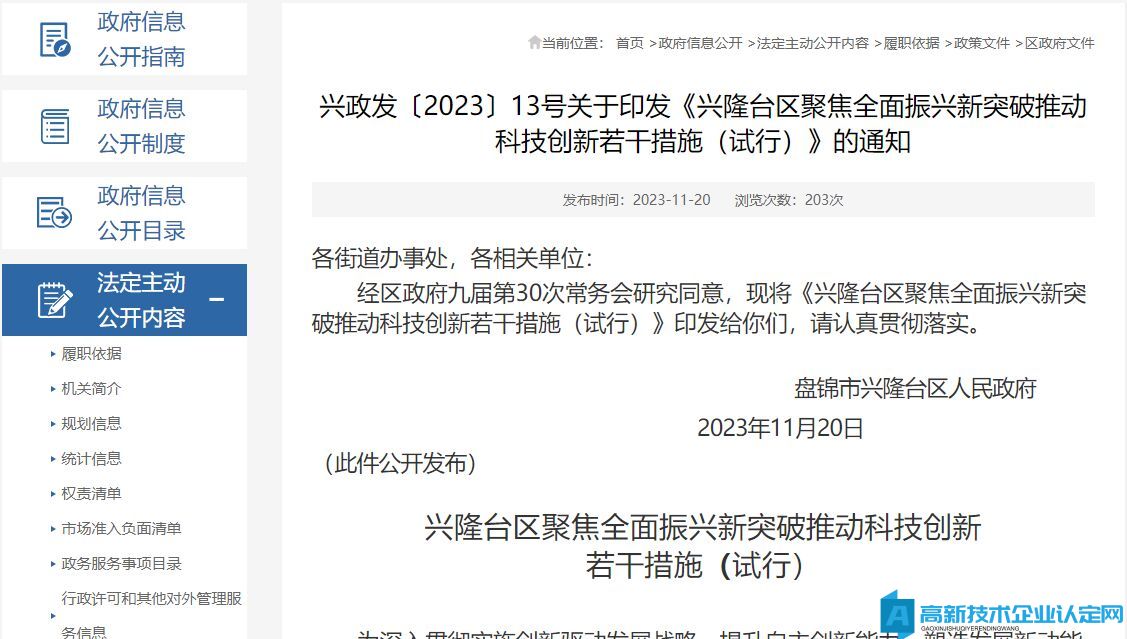 本文标题:盘锦市兴隆台区高新技术企业奖励政策:兴隆台区聚焦全面振兴新突破推动科技创新若干措施(试行)