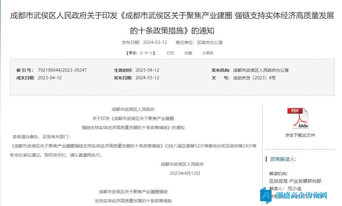 本文标题:成都市武侯区高新技术企业奖励政策:成都市武侯区关于聚焦产业建圈强链 支持实体经济高质量发展的十条政策措施